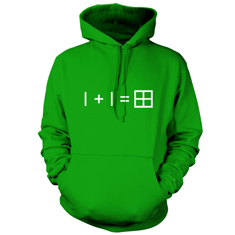 This 1 + 1 = Window design is available on a wide range of garments, use the menu on the right of this page to select your choice of the following: