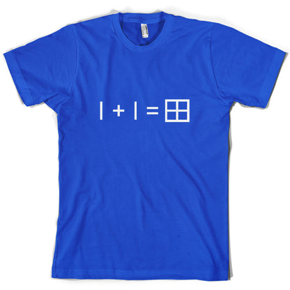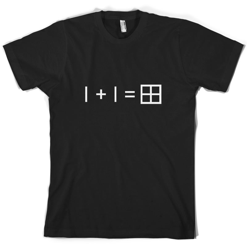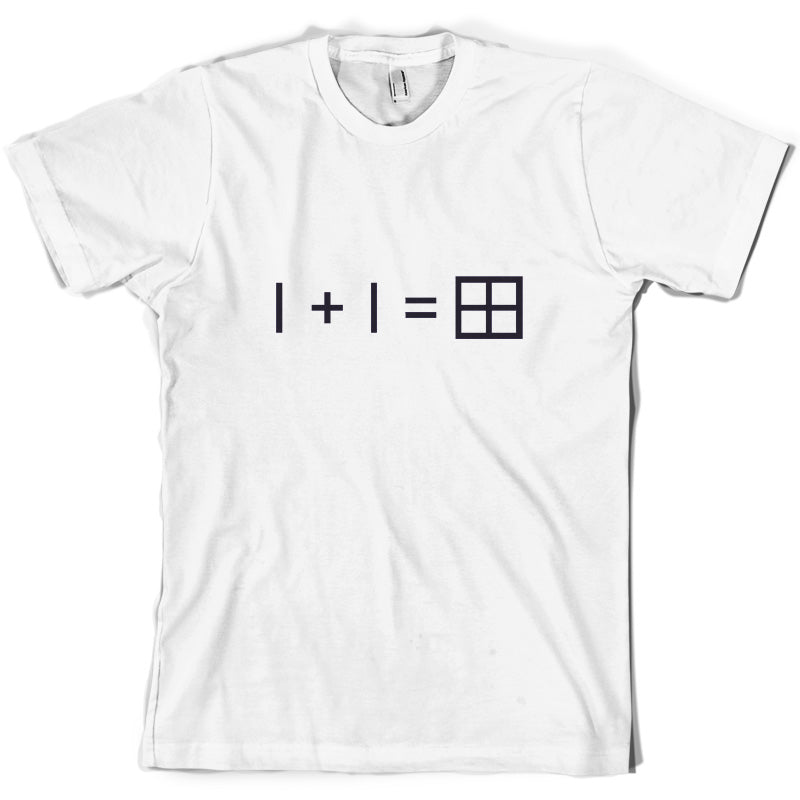Mens Unisex T-Shirt, our men's 1 + 1 = Window t shirt is printed onto our premium 190 GSM one piece crew neck t-shirt. Available in 10 Colours and from Size Small to XXL.