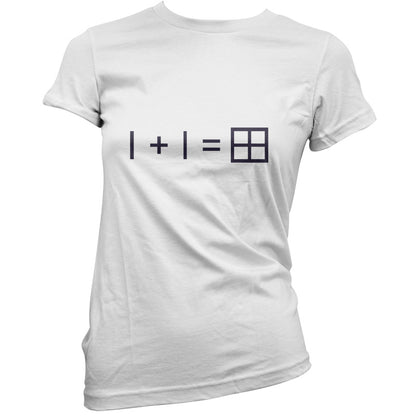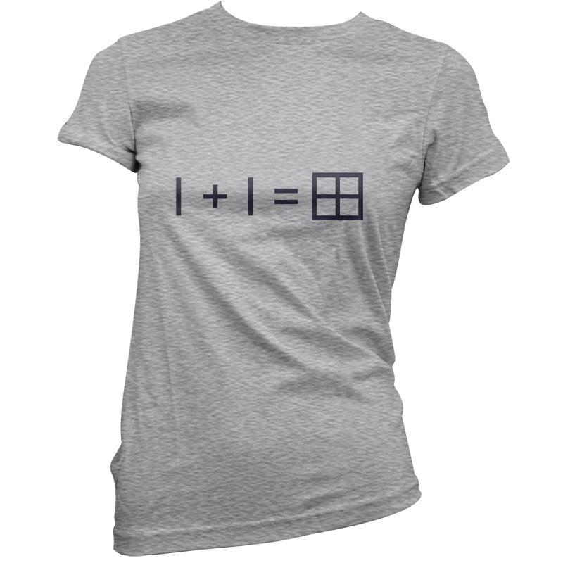 Women's Slim fit T-shirt, our ladies 1 + 1 = Window t-shirt is printed on our popular 150 GSM ring spun womens garment. Available in 11 colours and from Size Small to XXL.