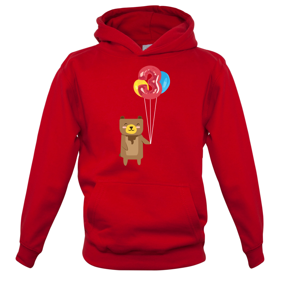Kids Hoodie: Our kids unisex style 3rd Birthday Bear Hoodie is printed on our 300 GSM kangaroo pocket hooded top and is available on 7 different Colours.