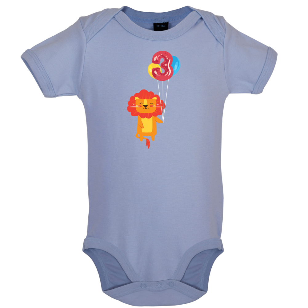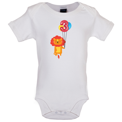 Babygrow/Bodysuit: Our Baby unisex style 3rd Birthday Lion Babygrow is printed on our 200 GSM short sleeve bodysuit and is available in a choice of 6 different Colours.