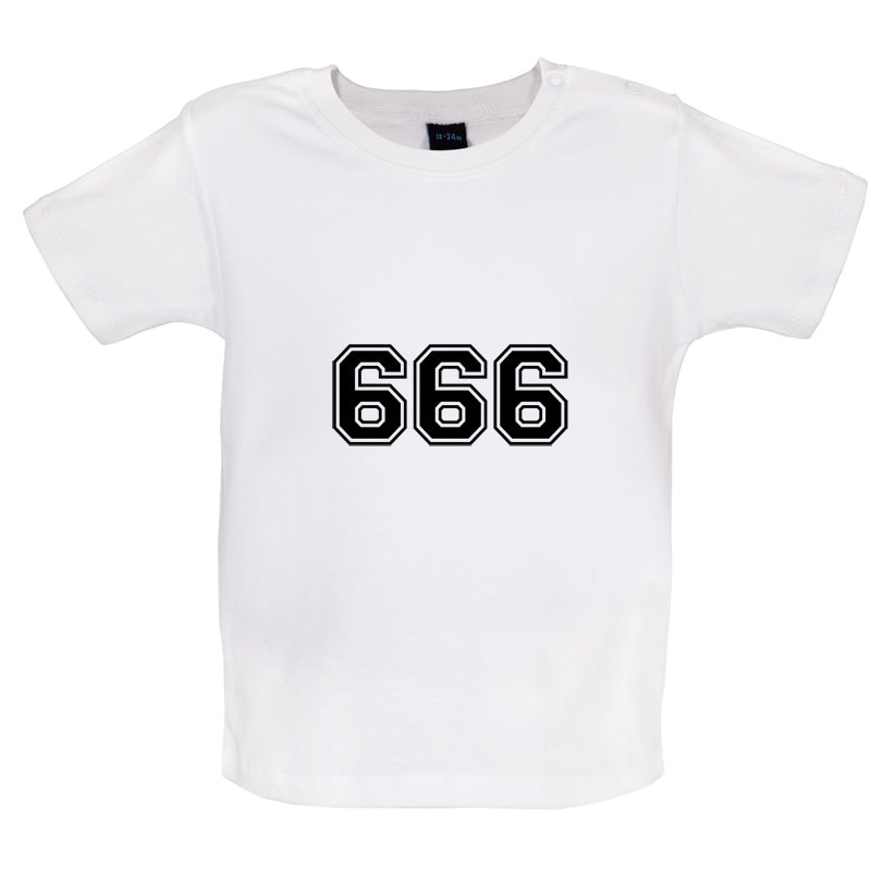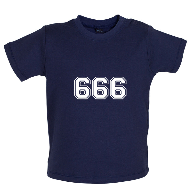 Baby/Toddler T-shirt: Our Baby Unisex style 666 College T-shirt is printed on our high quality 200 gsm ringspun cotton garment which features shoulder poppers to ease getting your little one dressed. Our Baby T-shirts are available in a choice of Eight colours.
