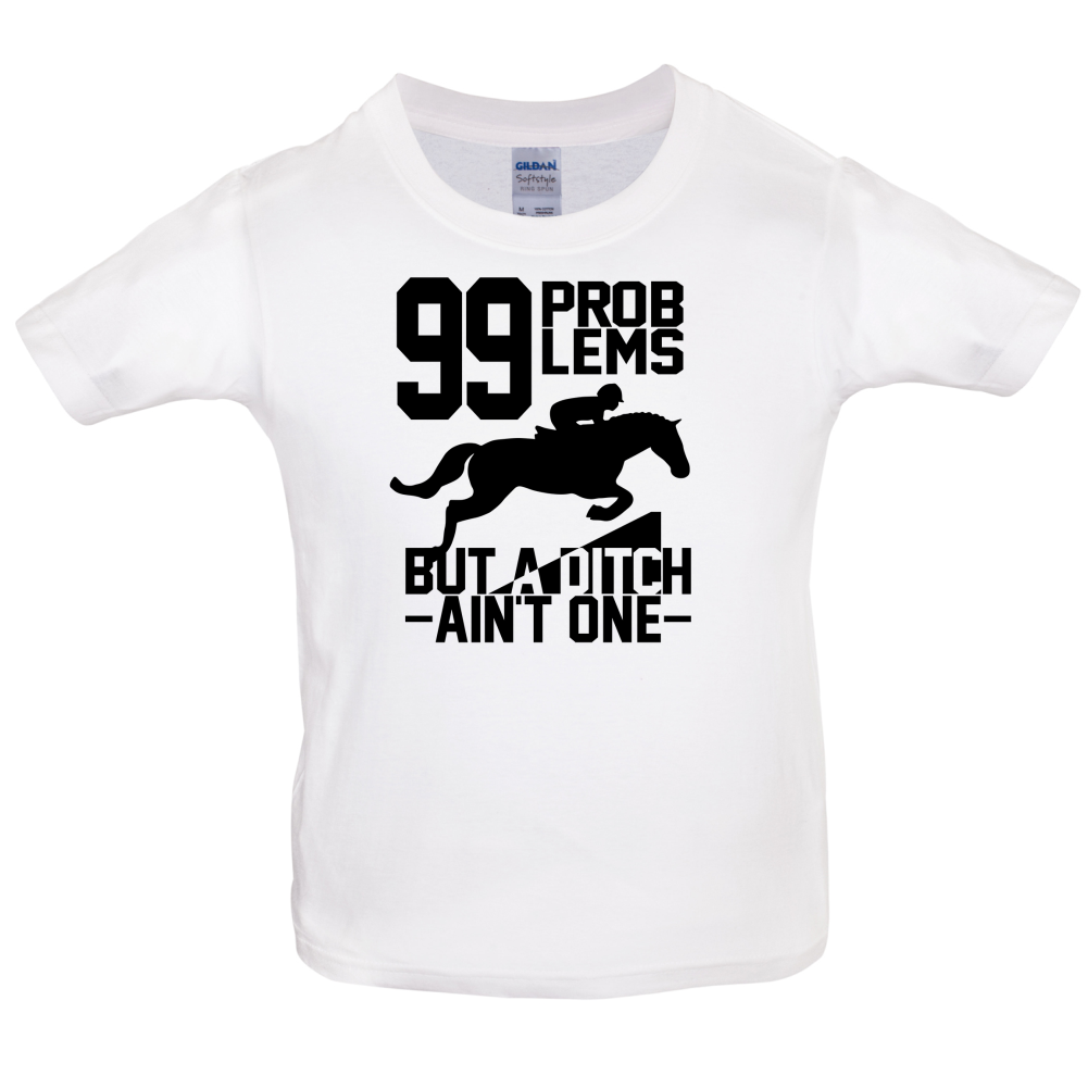 Kids T-shirt: Our Kid's Unisex style 99 Problems But A Ditch Aint One T-shirt is printed on our 150 GSM ringspun cotton garment and is available on 8 different colours.