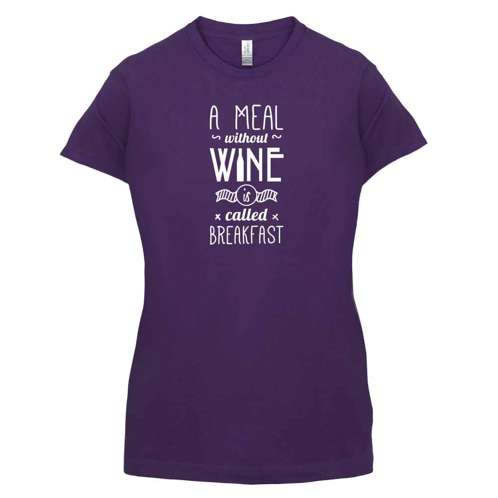 Women's Slim fit T-shirt, our ladies A Meal Without Wine Is Breakfast t-shirt is printed on our popular 150 GSM ring spun womens garment. Available in 11 colours and from Size Small to XXL.