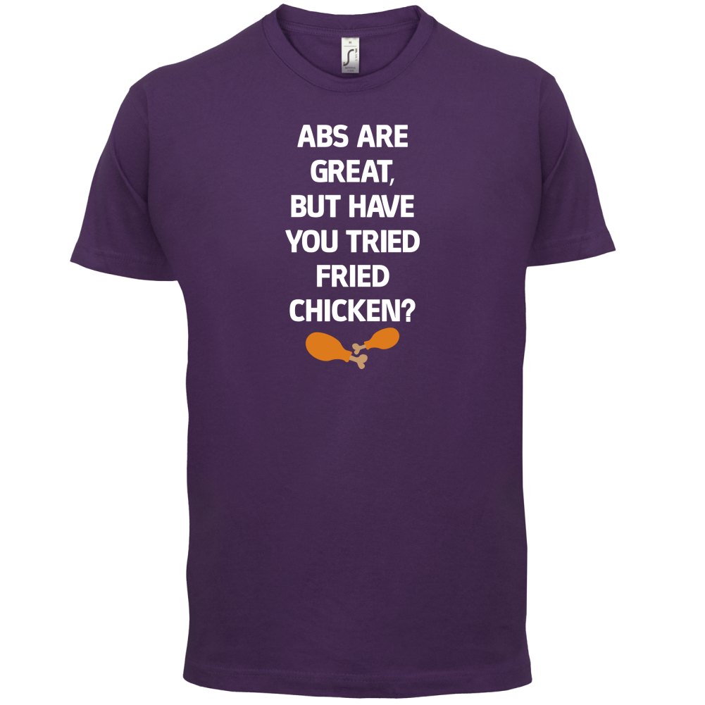 Mens Unisex T-Shirt, our men's Abs Are Great, Fried Chicken t shirt is printed onto our premium 190 GSM one piece crew neck t-shirt. Available in 10 Colours and from Size Small to XXL.