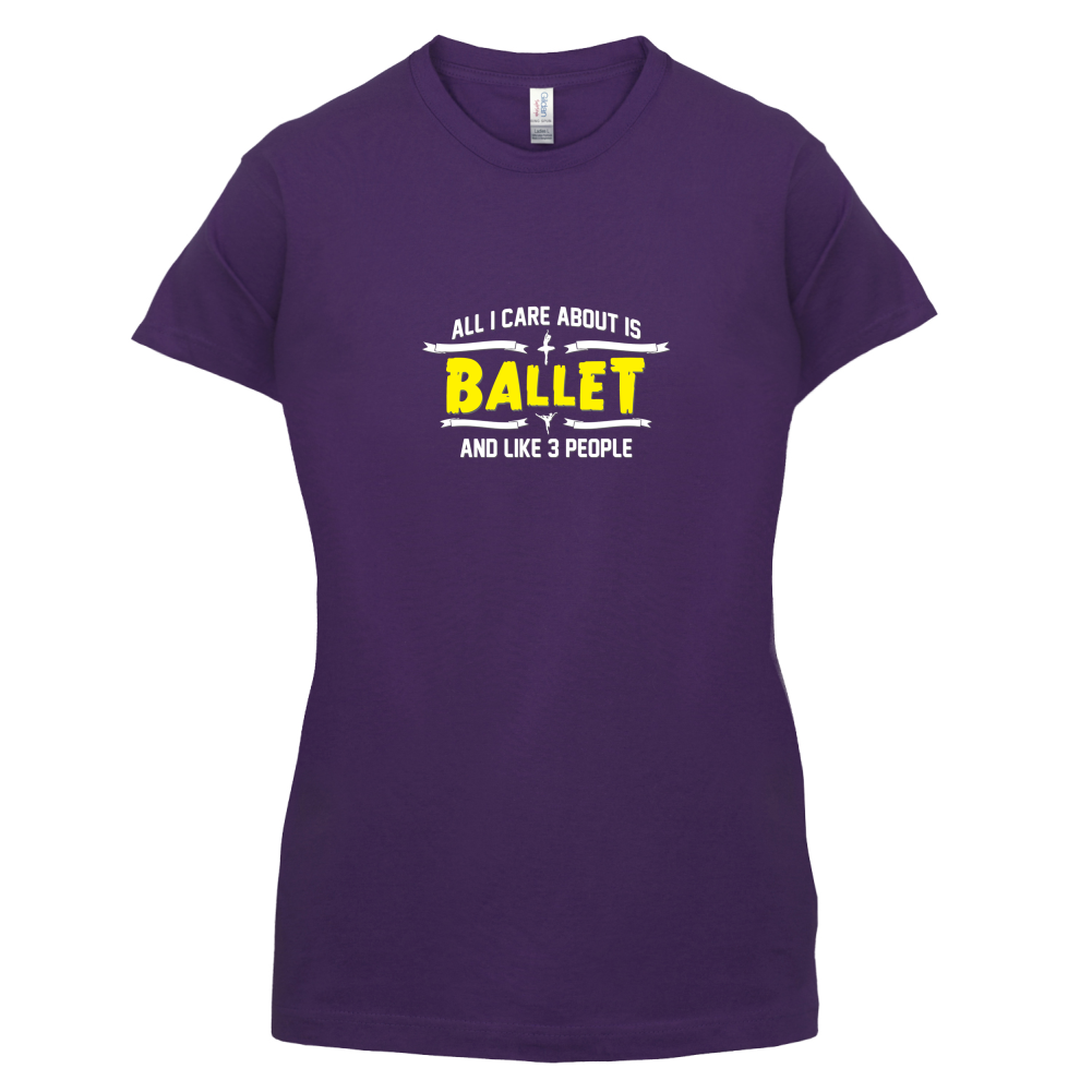 Women's Slim fit T-shirt, our ladies All I Care About Is Ballet t-shirt is printed on our popular 150 GSM ring spun womens garment. Available in 11 colours and from Size Small to XXL.