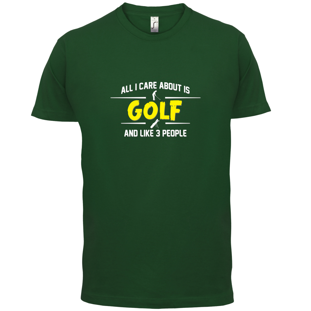 Mens Unisex T-Shirt, our men's All I Care About Is Golf t shirt is printed onto our premium 190 GSM one piece crew neck t-shirt. Available in 10 Colours and from Size Small to XXL.