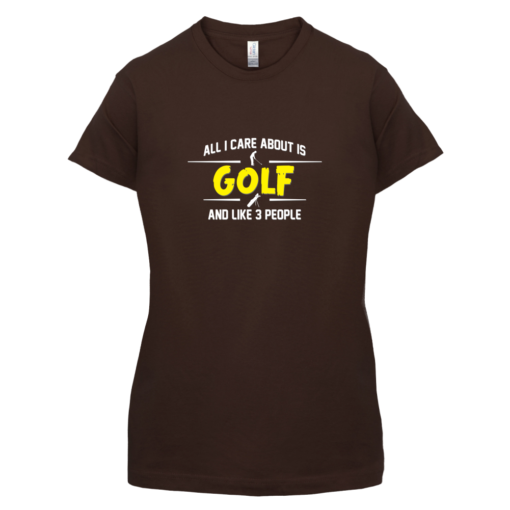 Women's Slim fit T-shirt, our ladies All I Care About Is Golf t-shirt is printed on our popular 150 GSM ring spun womens garment. Available in 11 colours and from Size Small to XXL.