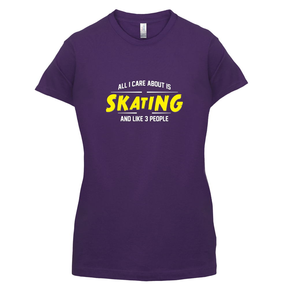 Women's Slim fit T-shirt, our ladies All I Care About Is Skating t-shirt is printed on our popular 150 GSM ring spun womens garment. Available in 11 colours and from Size Small to XXL.