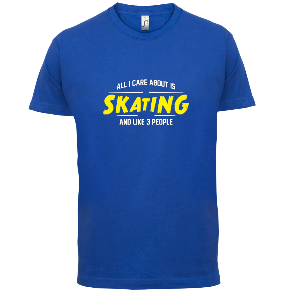 Mens Unisex T-Shirt, our men's All I Care About Is Skating t shirt is printed onto our premium 190 GSM one piece crew neck t-shirt. Available in 10 Colours and from Size Small to XXL.