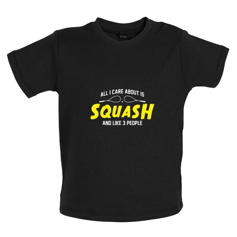 Baby/Toddler T-shirt: Our Baby Unisex style All I Care About Is Squash T-shirt is printed on our high quality 200 gsm ringspun cotton garment which features shoulder poppers to ease getting your little one dressed. Our Baby T-shirts are available in a choice of Eight colours.