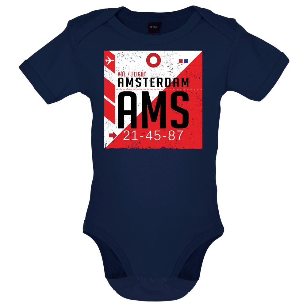 This Amsterdam Airport baby design is available in a choice of garments, use the menu on the right of this page to select your choice of the following: