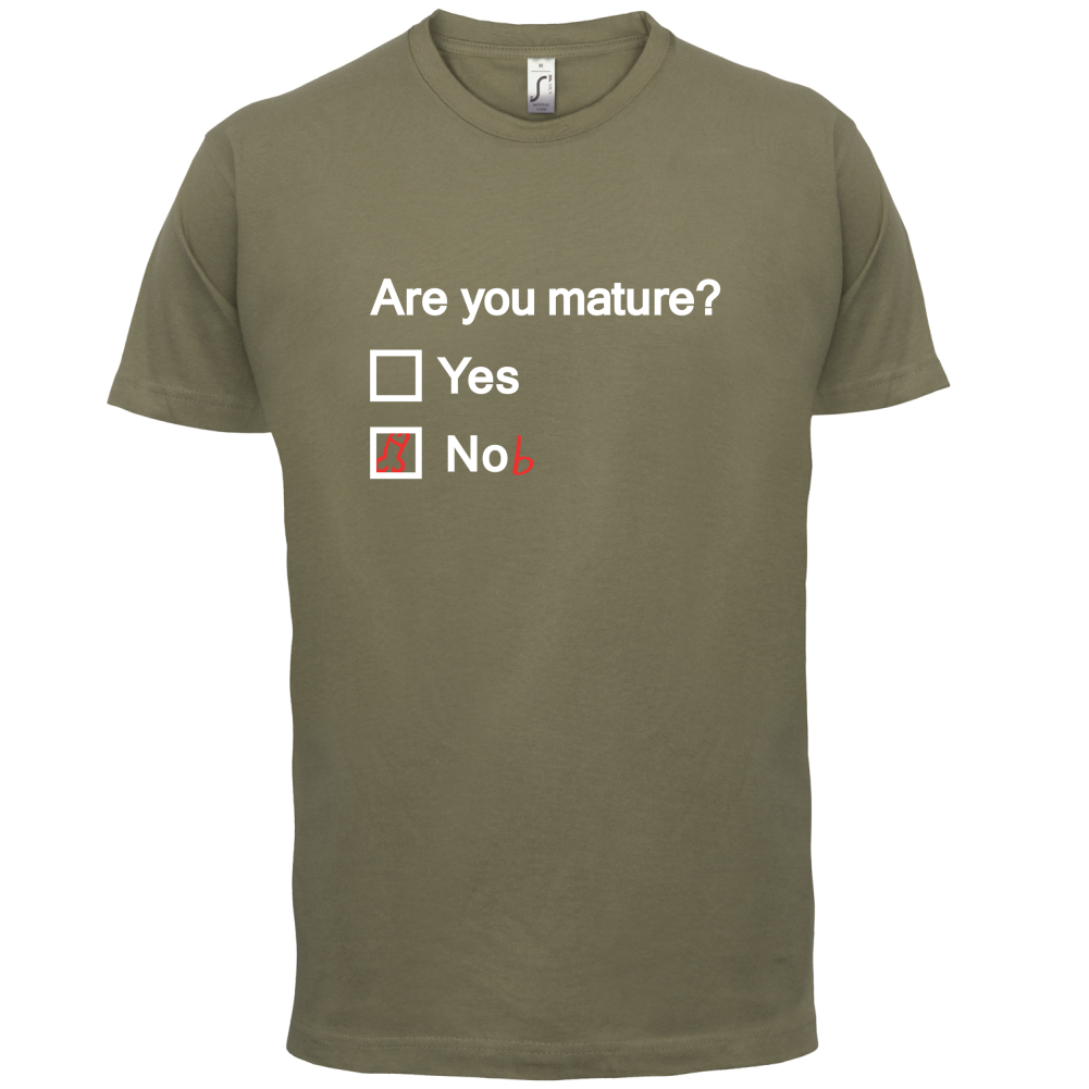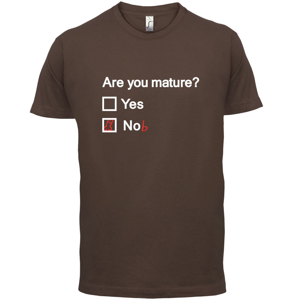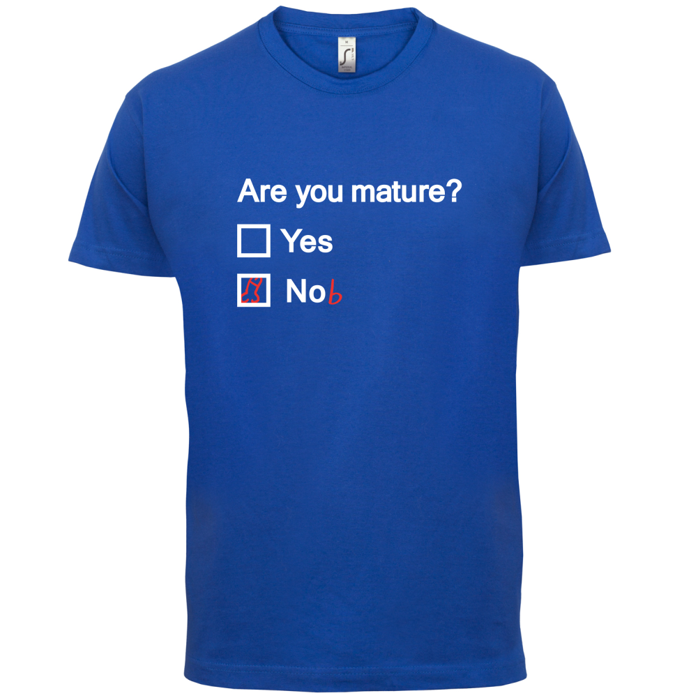 Mens Unisex T-Shirt, our men's Are You Mature t shirt is printed onto our premium 190 GSM one piece crew neck t-shirt. Available in 10 Colours and from Size Small to XXL.