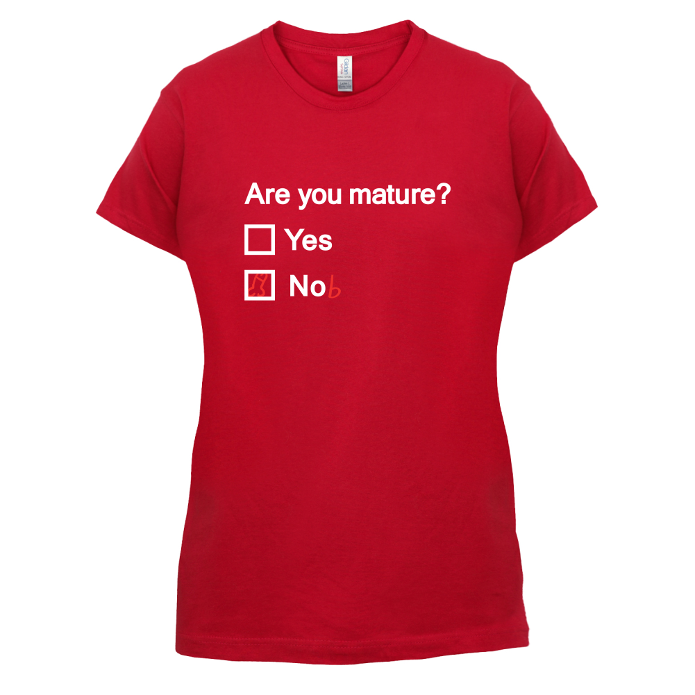 Women's Slim fit T-shirt, our ladies Are You Mature t-shirt is printed on our popular 150 GSM ring spun womens garment. Available in 11 colours and from Size Small to XXL.