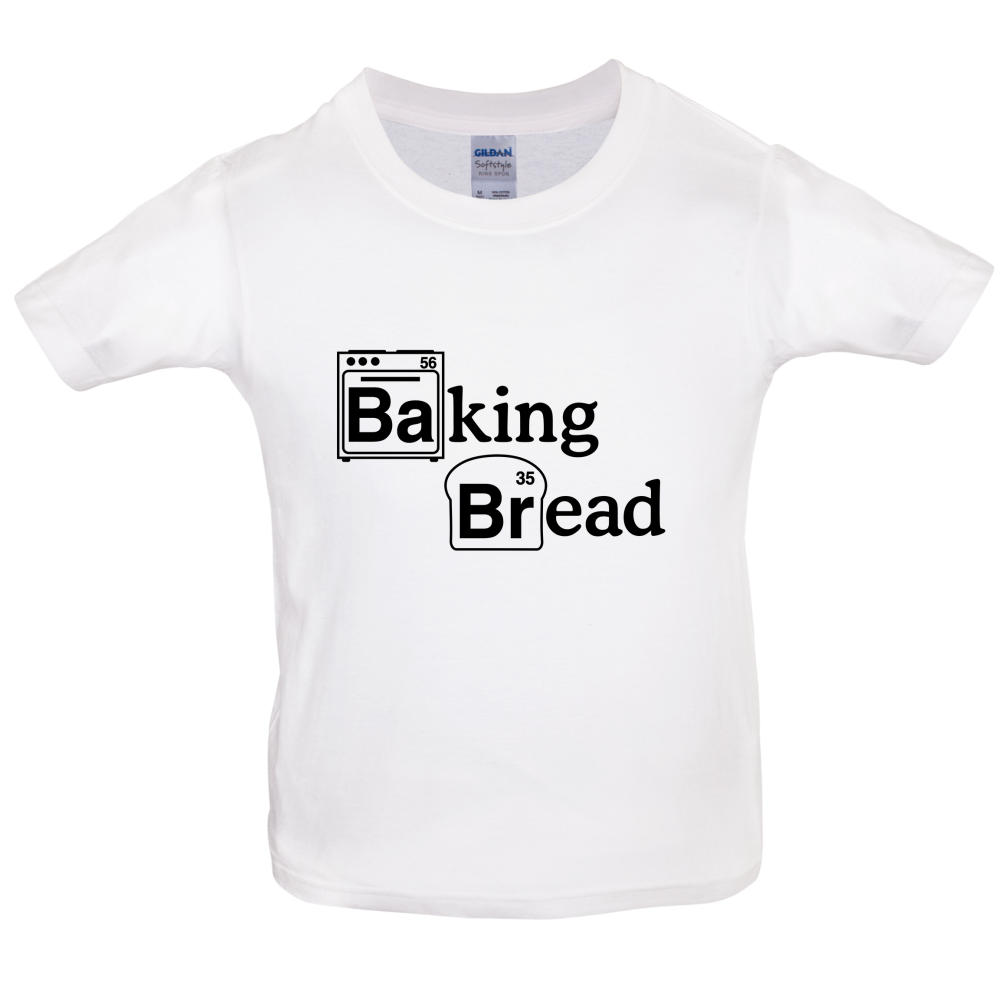 Kids T-shirt: Our Kid's Unisex style Baking Bread T-shirt is printed on our 150 GSM ringspun cotton garment and is available on 8 different colours.