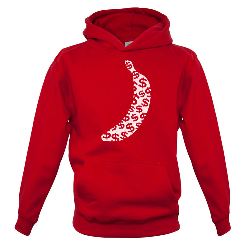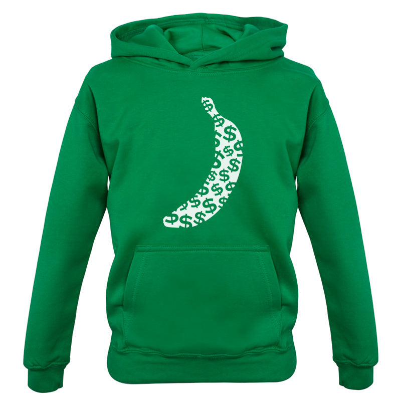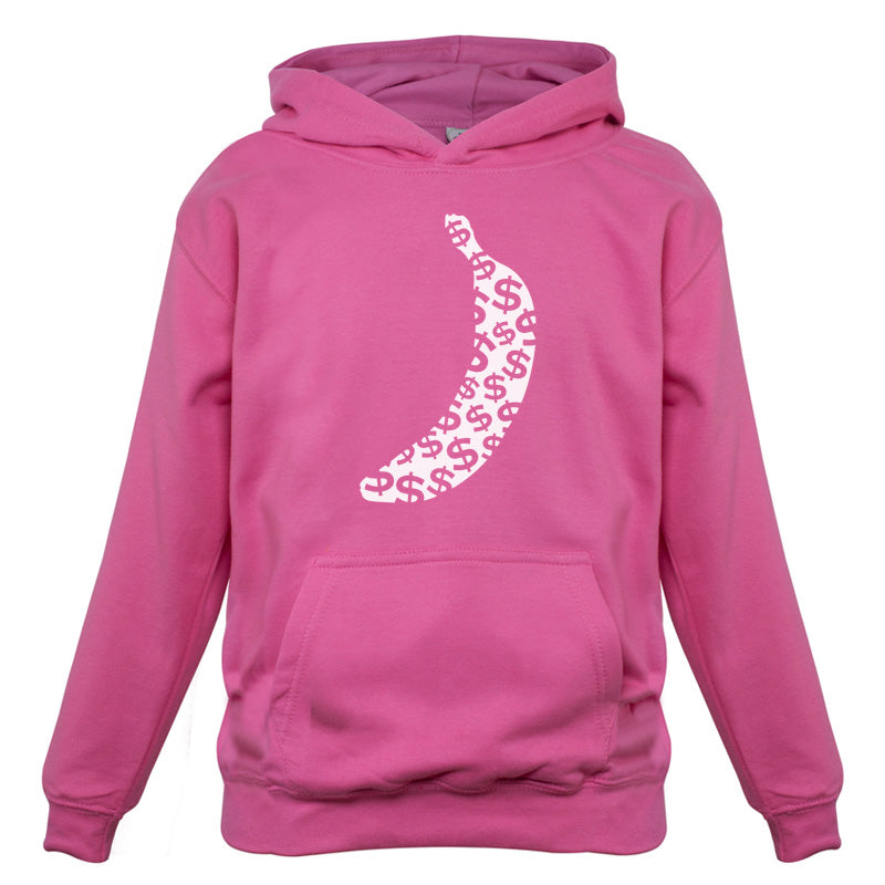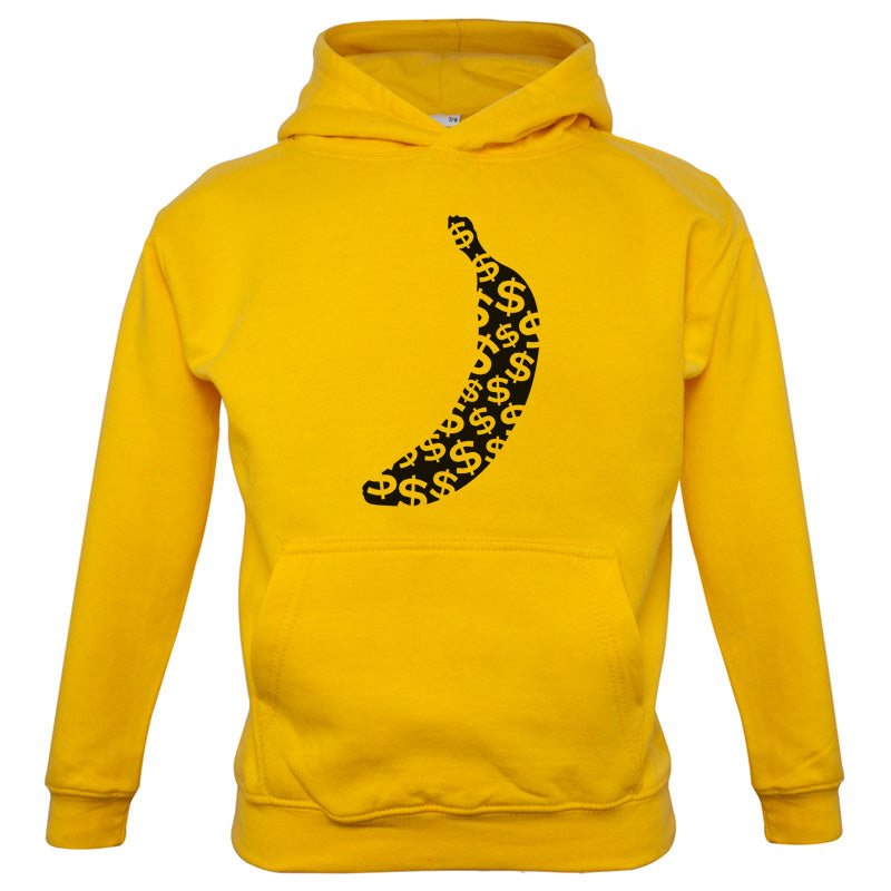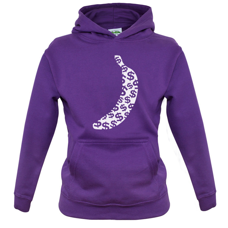 Kids Hoodie: Our kids unisex style Banana Money Hoodie is printed on our 300 GSM kangaroo pocket hooded top and is available on 7 different Colours.