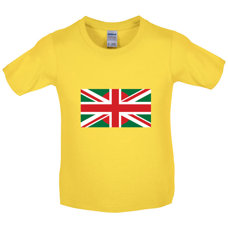 Kids T-shirt: Our Kid's Unisex style Bangladesh Union Jack Flag T-shirt is printed on our 150 GSM ringspun cotton garment and is available on 8 different colours.
