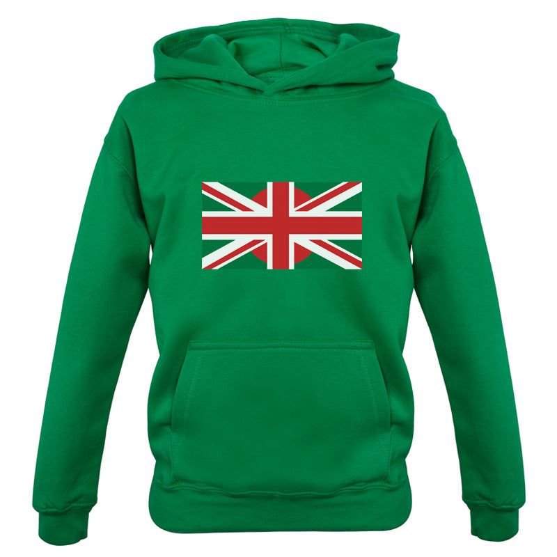 Kids Hoodie: Our kids unisex style Bangladesh Union Jack Flag Hoodie is printed on our 300 GSM kangaroo pocket hooded top and is available on 7 different Colours.
