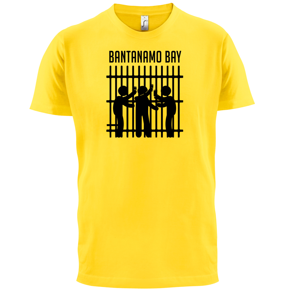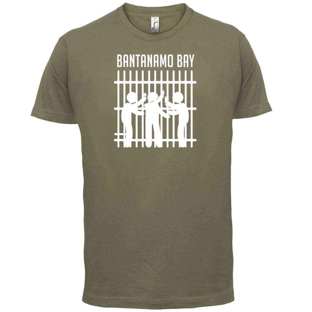 Mens Unisex T-Shirt, our men's Bantanamo Bay t shirt is printed onto our premium 190 GSM one piece crew neck t-shirt. Available in 10 Colours and from Size Small to XXL.