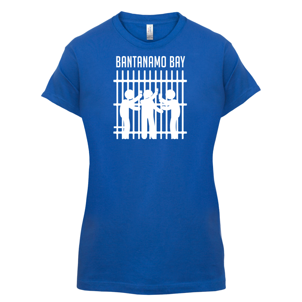 Women's Slim fit T-shirt, our ladies Bantanamo Bay t-shirt is printed on our popular 150 GSM ring spun womens garment. Available in 11 colours and from Size Small to XXL.