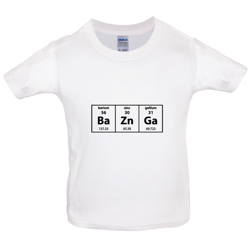 Kids T-shirt: Our Kid's Unisex style Baznga Periodic Table T-shirt is printed on our 150 GSM ringspun cotton garment and is available on 8 different colours.