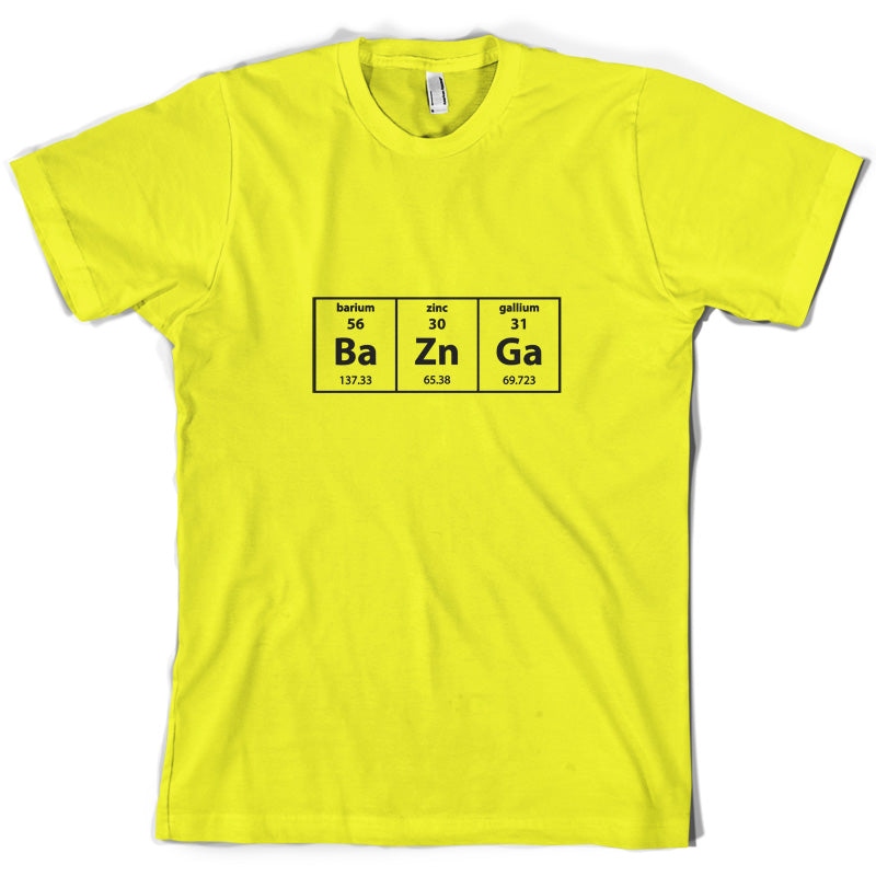 Say Bazinga to the "Barium, Zinc, Gallium" t-shirts. Perfect for all fans of the Big Bang Theory.