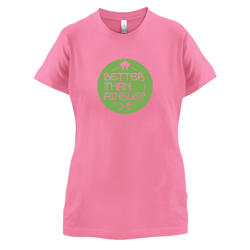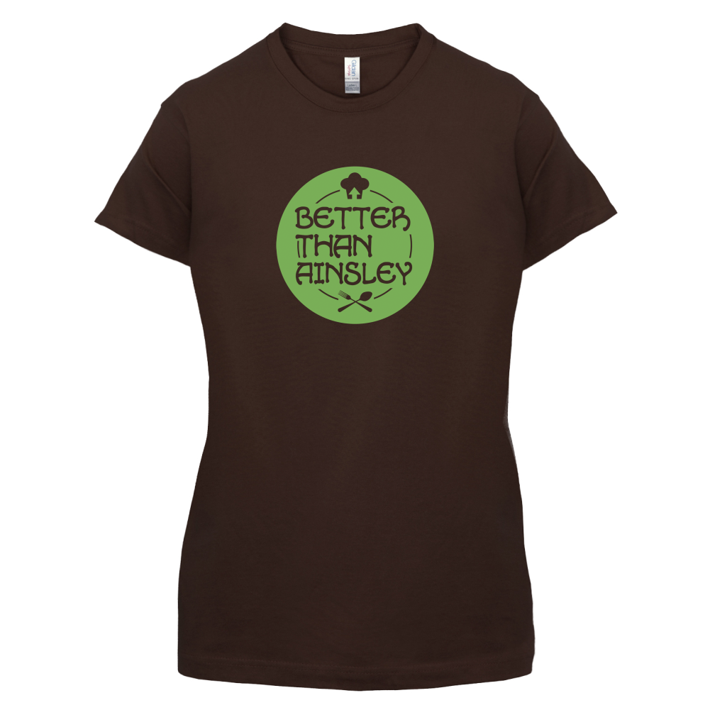 Women's Slim fit T-shirt, our ladies Better Than Ainsley t-shirt is printed on our popular 150 GSM ring spun womens garment. Available in 11 colours and from Size Small to XXL.