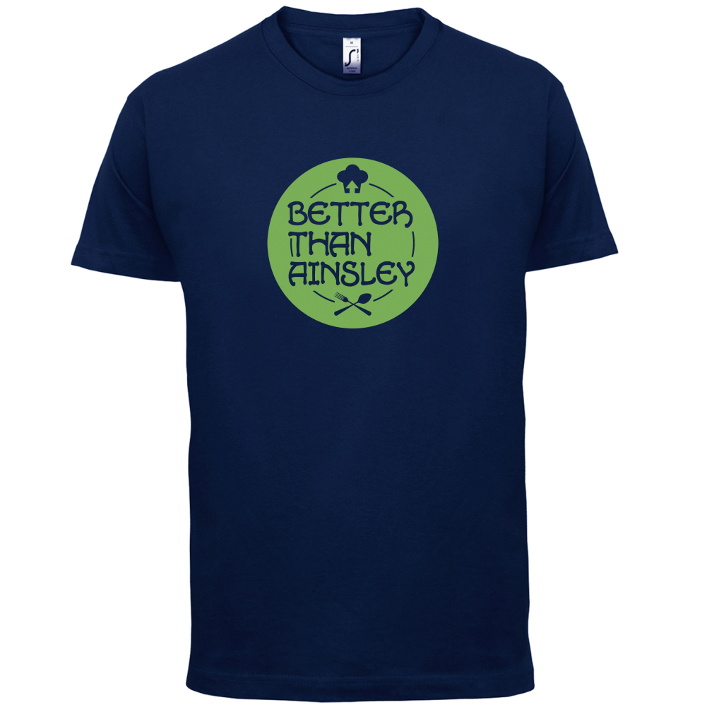 Mens Unisex T-Shirt, our men's Better Than Ainsley t shirt is printed onto our premium 190 GSM one piece crew neck t-shirt. Available in 10 Colours and from Size Small to XXL.