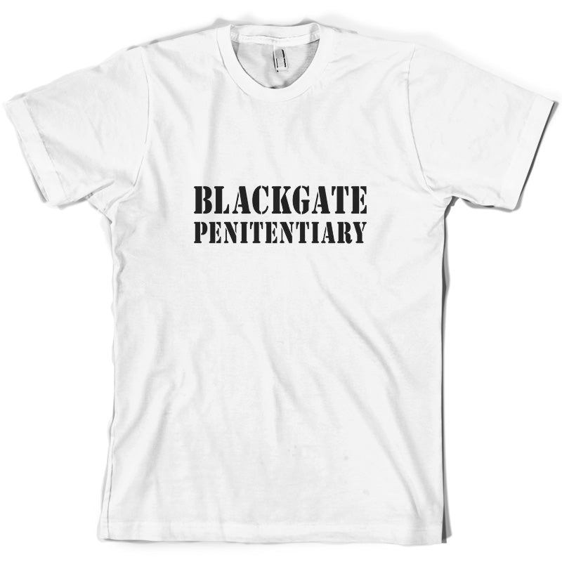 Mens Unisex T-Shirt, our men's Blackgate Penitentiary t shirt is printed onto our premium 190 GSM one piece crew neck t-shirt. Available in 10 Colours and from Size Small to XXL.