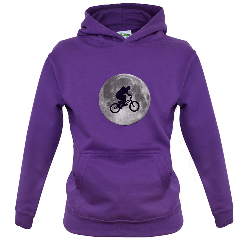Kids Hoodie: Our kids unisex style BMX Moon Hoodie is printed on our 300 GSM kangaroo pocket hooded top and is available on 7 different Colours.