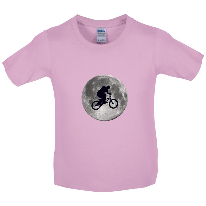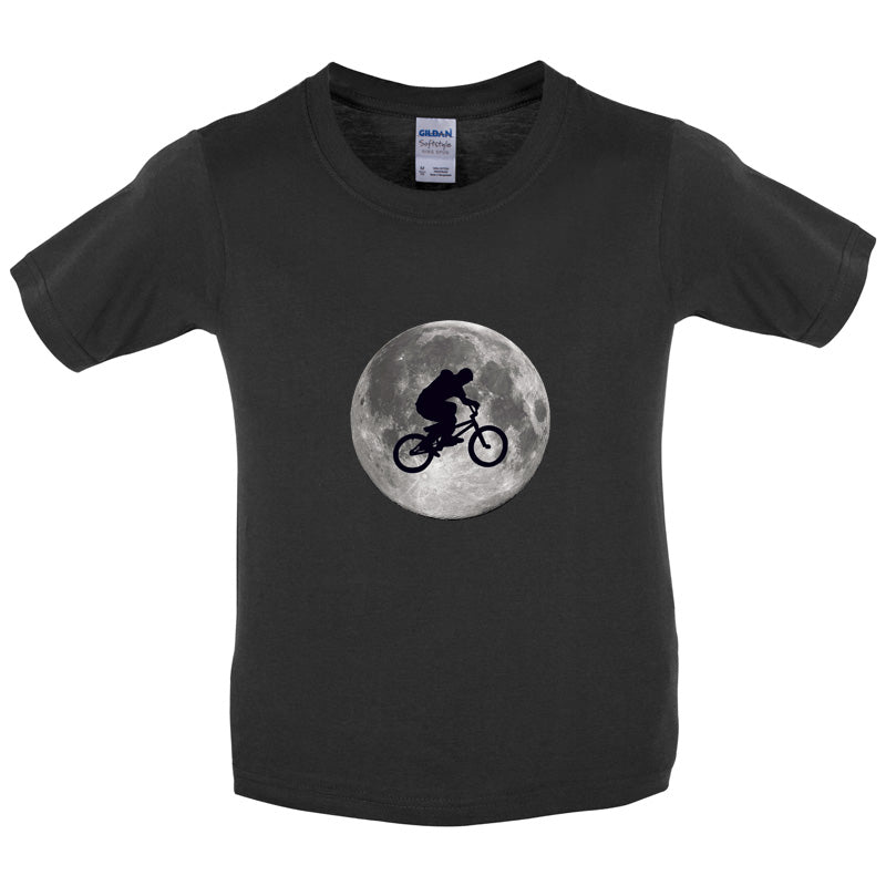 Kids T-shirt: Our Kid's Unisex style BMX Moon T-shirt is printed on our 150 GSM ringspun cotton garment and is available on 8 different colours.