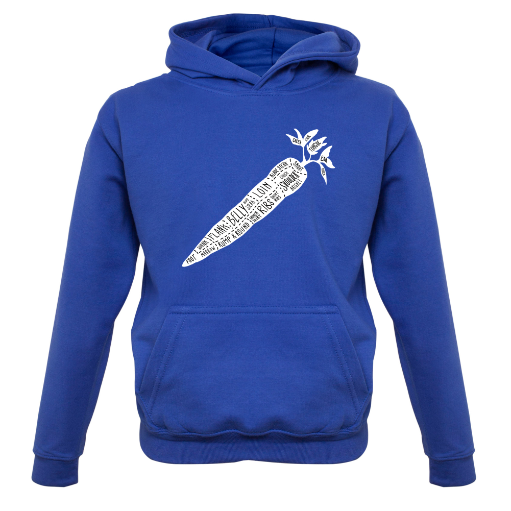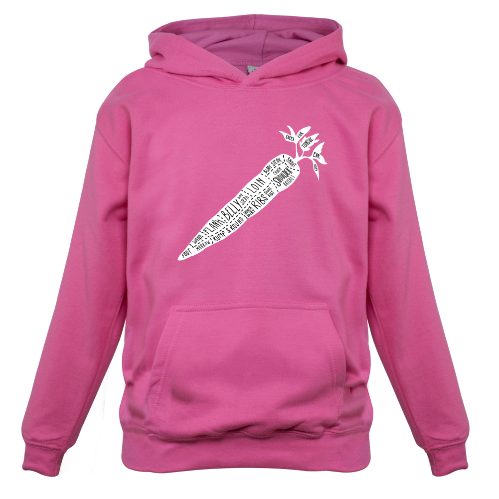 Kids Hoodie: Our kids unisex style Butcher Carrot Diagram Hoodie is printed on our 300 GSM kangaroo pocket hooded top and is available on 7 different Colours.