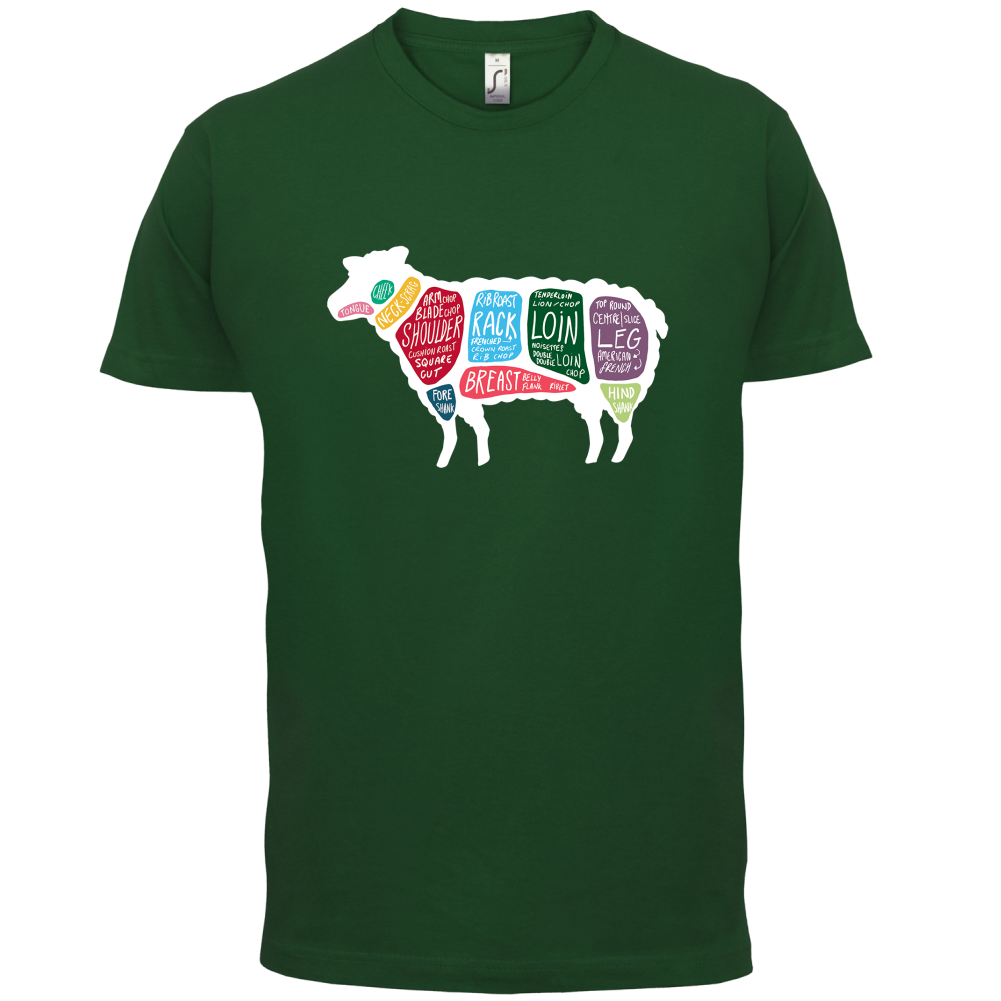 Mens Unisex T-Shirt, our men's Butcher Sheep Diagram t shirt is printed onto our premium 190 GSM one piece crew neck t-shirt. Available in 10 Colours and from Size Small to XXL.