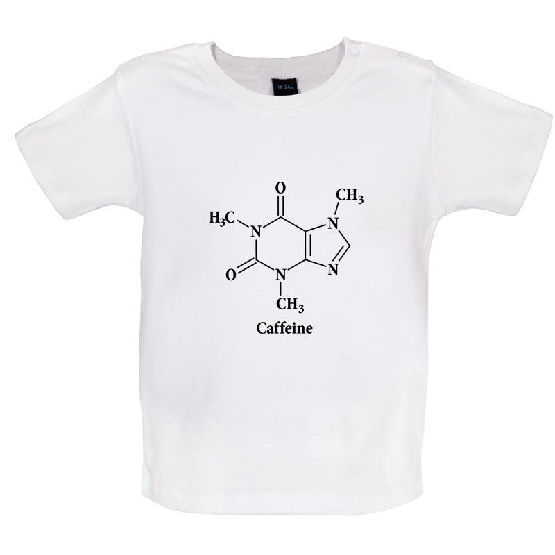 Baby/Toddler T-shirt: Our Baby Unisex style Caffeine Formula T-shirt is printed on our high quality 200 gsm ringspun cotton garment which features shoulder poppers to ease getting your little one dressed. Our Baby T-shirts are available in a choice of Eight colours.