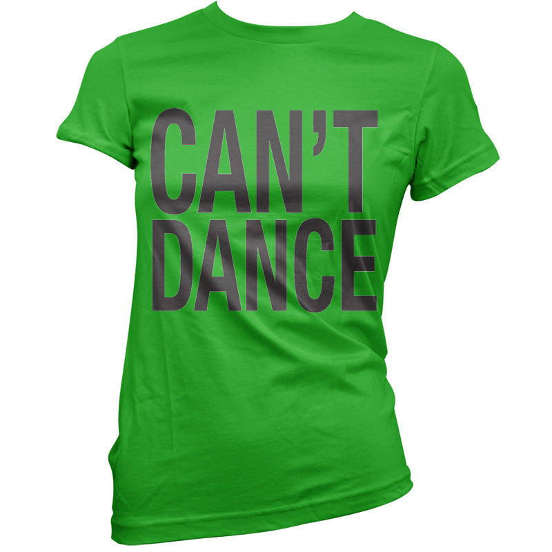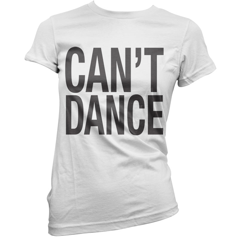 Women's Slim fit T-shirt, our ladies Can't Dance t-shirt is printed on our popular 150 GSM ring spun womens garment. Available in 11 colours and from Size Small to XXL.