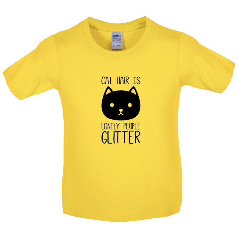 Kids T-shirt: Our Kid's Unisex style Cat Hair Is Lonely People Glitter T-shirt is printed on our 150 GSM ringspun cotton garment and is available on 8 different colours.
