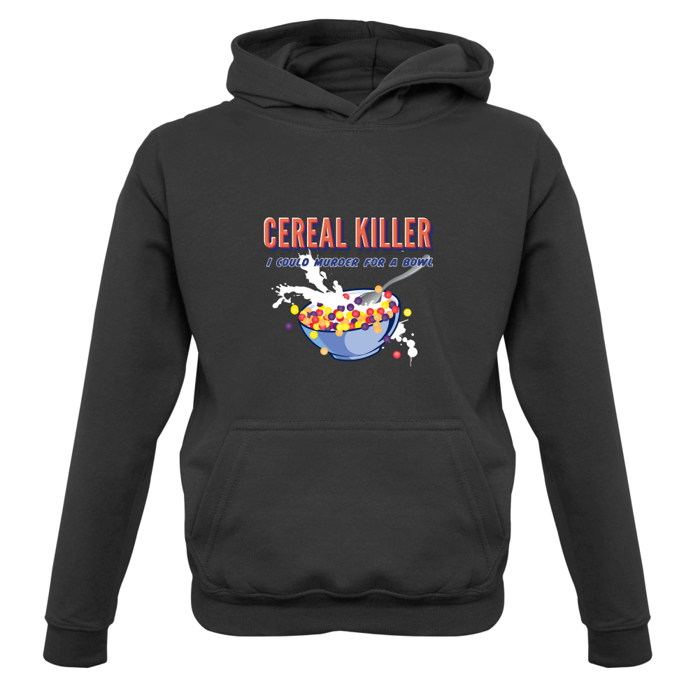 Kids Hoodie: Our kids unisex style Cereal Killer Hoodie is printed on our 300 GSM kangaroo pocket hooded top and is available on 7 different Colours.