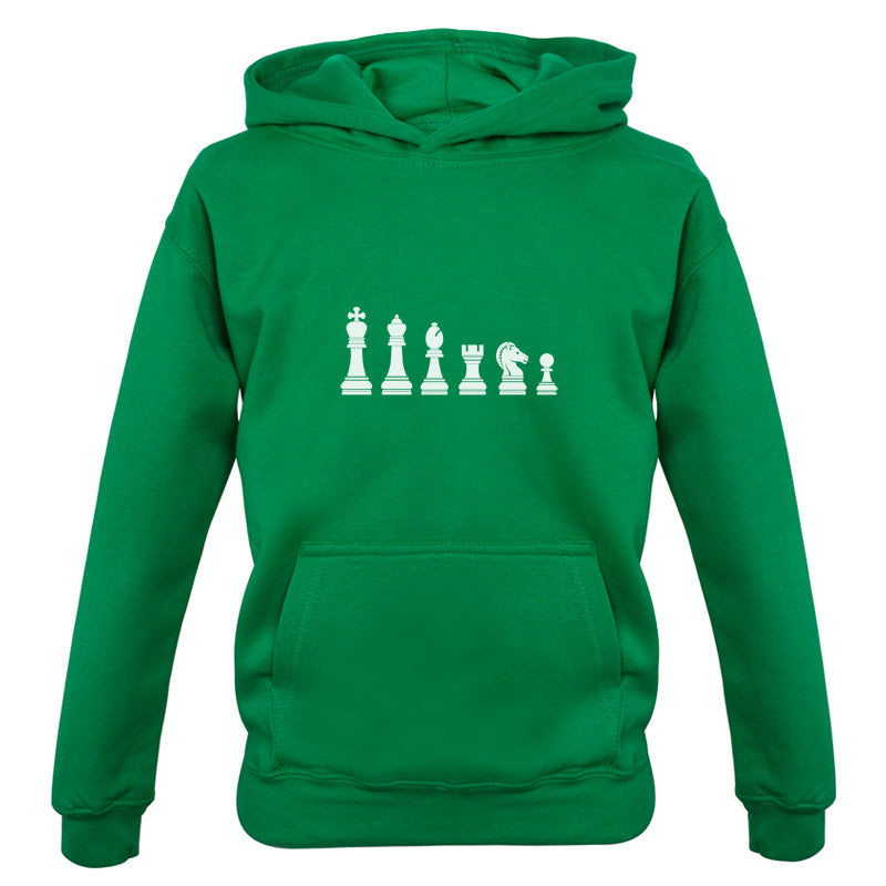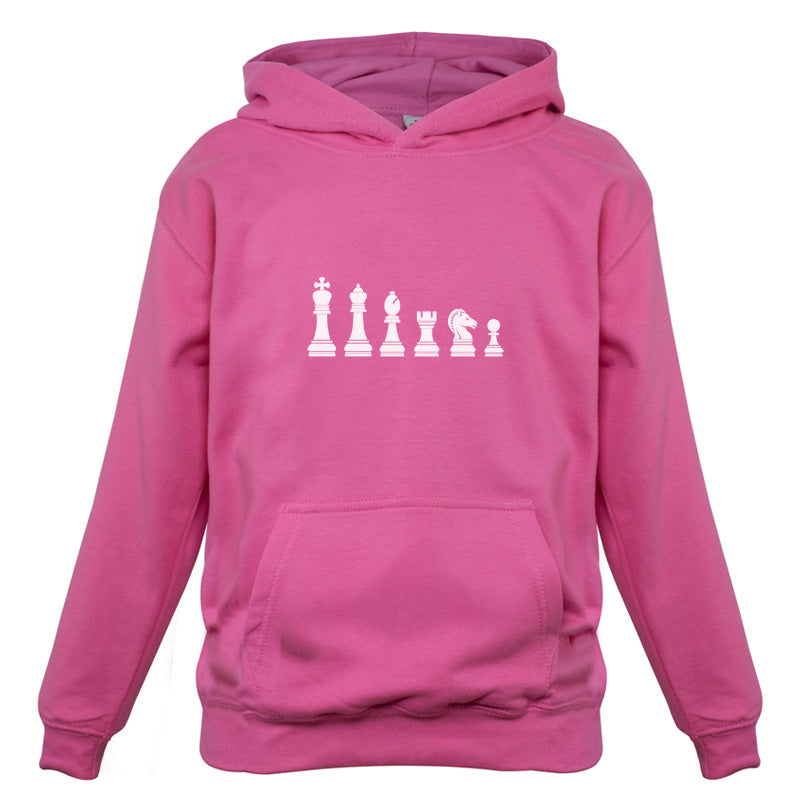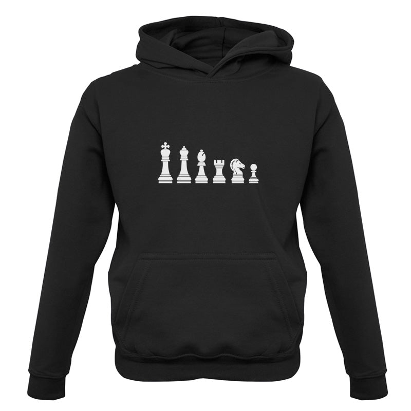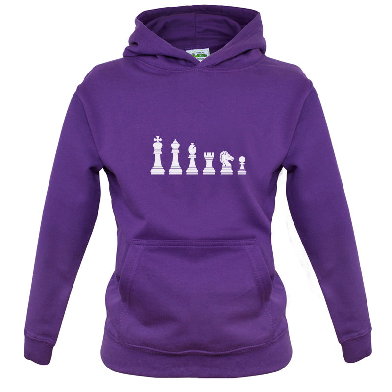 Kids Hoodie: Our kids unisex style Chess Pieces Hoodie is printed on our 300 GSM kangaroo pocket hooded top and is available on 7 different Colours.