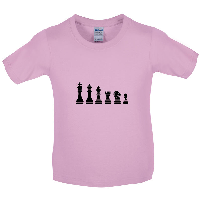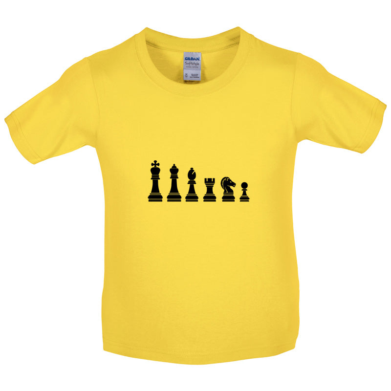 Kids T-shirt: Our Kid's Unisex style Chess Pieces T-shirt is printed on our 150 GSM ringspun cotton garment and is available on 8 different colours.