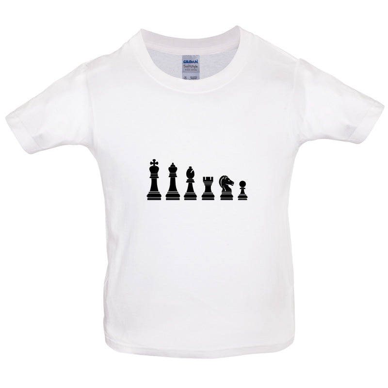 Kids T-shirt: Our Kid's Unisex style Chess Pieces T-shirt is printed on our 150 GSM ringspun cotton garment and is available on 8 different colours.