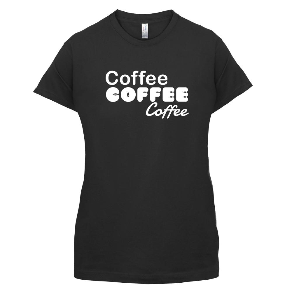 Women's Slim fit T-shirt, our ladies Coffee Coffee Coffee t-shirt is printed on our popular 150 GSM ring spun womens garment. Available in 11 colours and from Size Small to XXL.