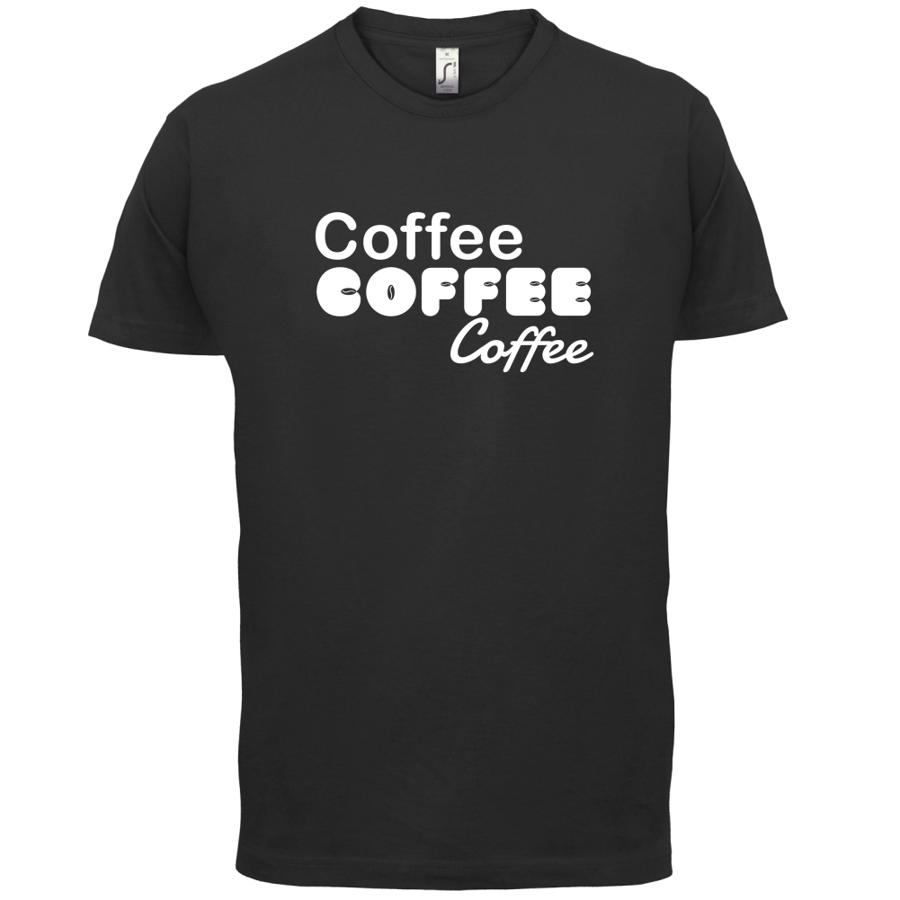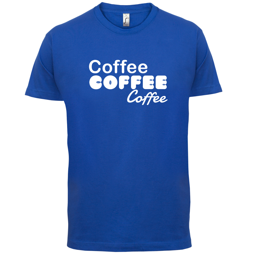 Mens Unisex T-Shirt, our men's Coffee Coffee Coffee t shirt is printed onto our premium 190 GSM one piece crew neck t-shirt. Available in 10 Colours and from Size Small to XXL.