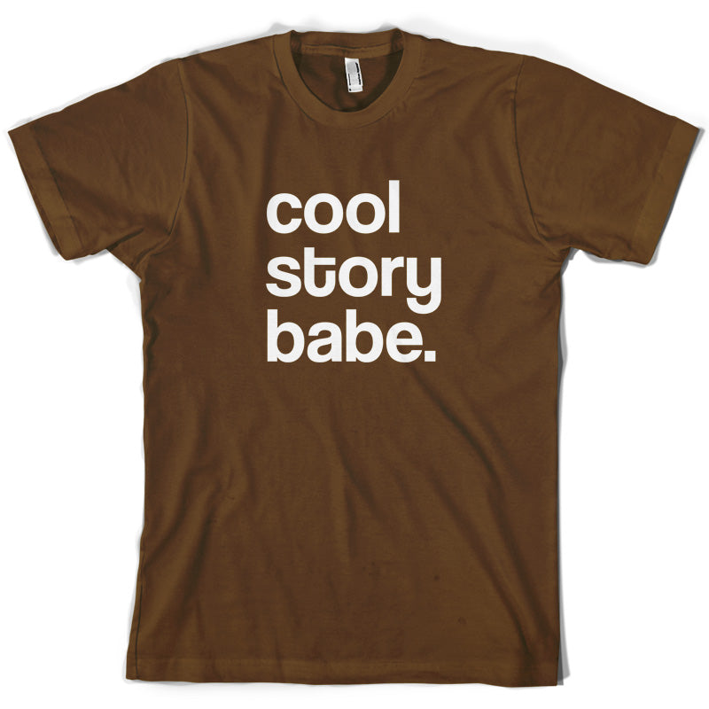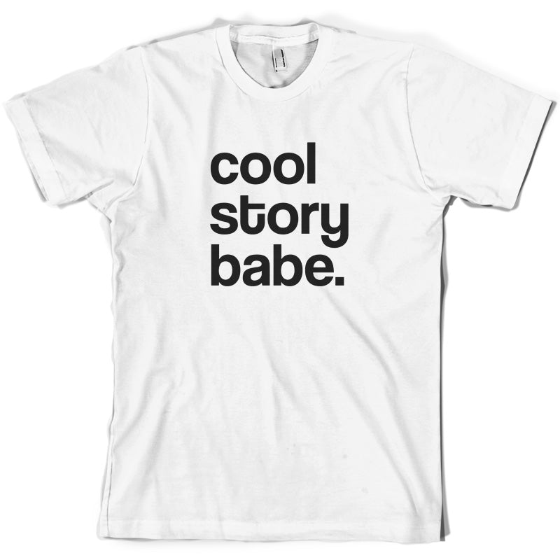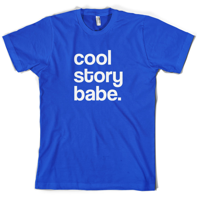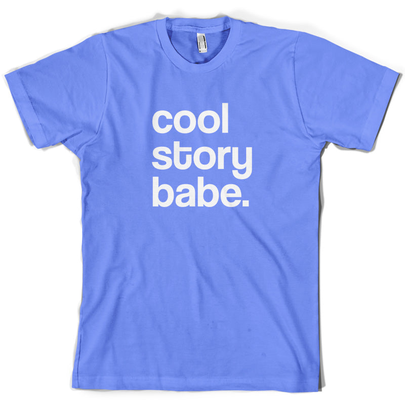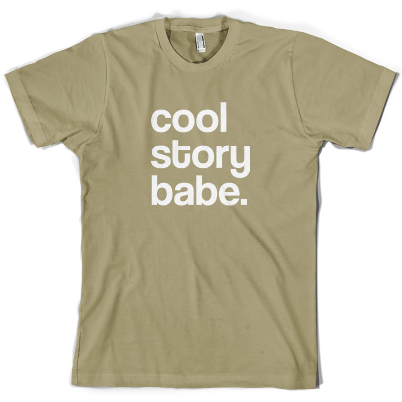 Mens Unisex T-Shirt, our men's Cool Story Babe t shirt is printed onto our premium 190 GSM one piece crew neck t-shirt. Available in 10 Colours and from Size Small to XXL.