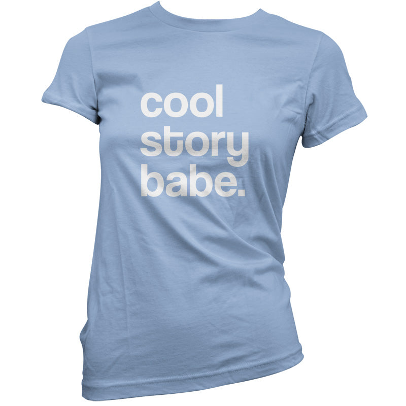 Women's Slim fit T-shirt, our ladies Cool Story Babe t-shirt is printed on our popular 150 GSM ring spun womens garment. Available in 11 colours and from Size Small to XXL.