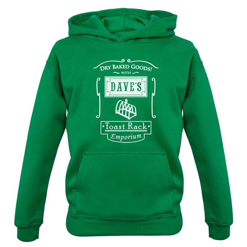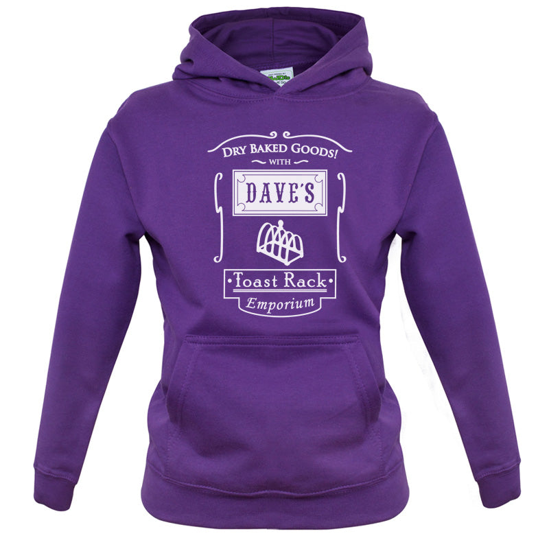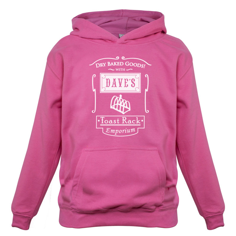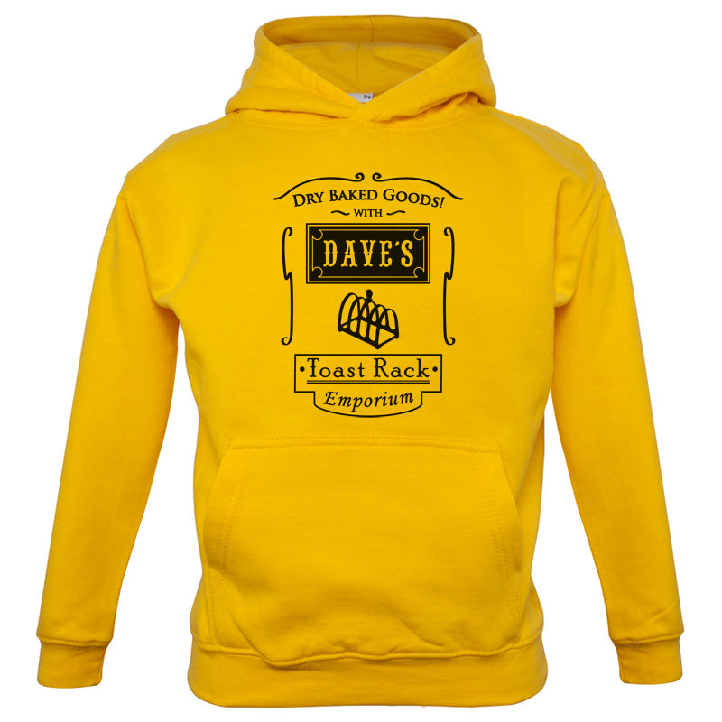 Kids Hoodie: Our kids unisex style Dave's Toast Rack Emporium Hoodie is printed on our 300 GSM kangaroo pocket hooded top and is available on 7 different Colours.