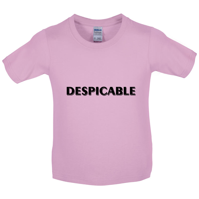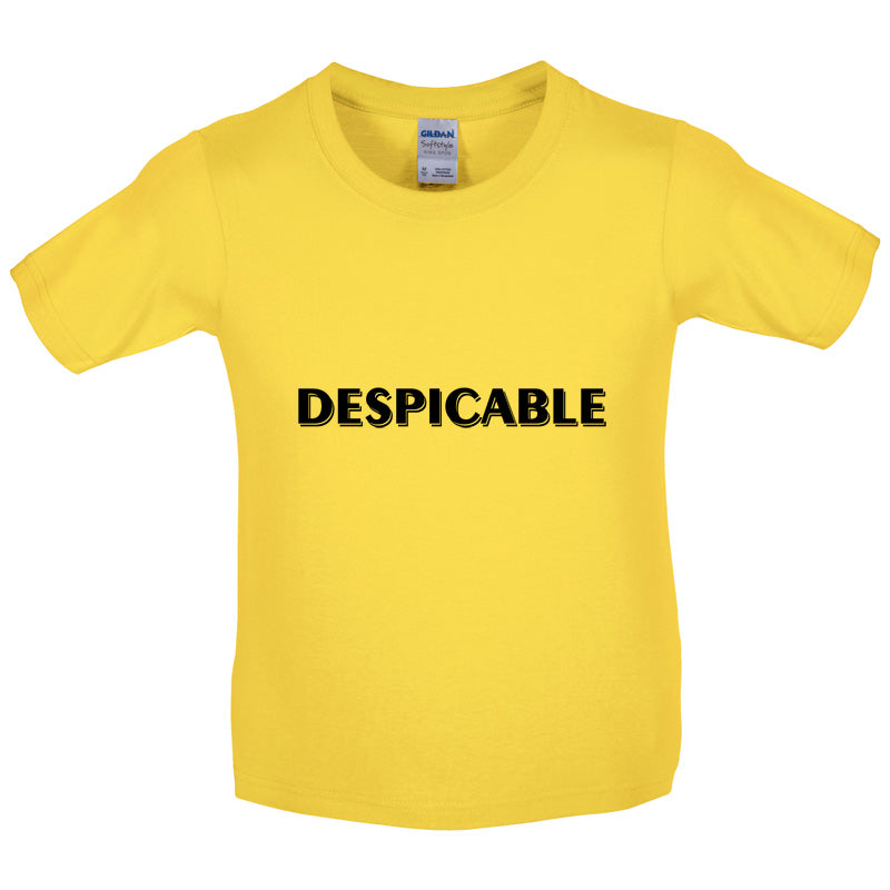 Kids T-shirt: Our Kid's Unisex style Despicable T-shirt is printed on our 150 GSM ringspun cotton garment and is available on 8 different colours.