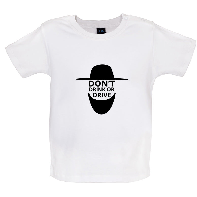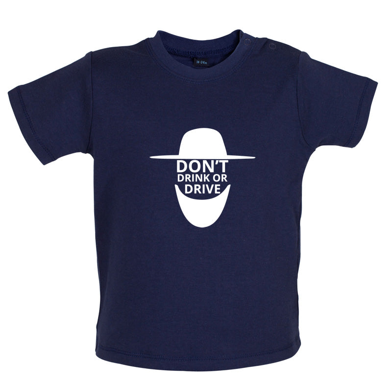 Baby/Toddler T-shirt: Our Baby Unisex style Dont Drink Or Drive T-shirt is printed on our high quality 200 gsm ringspun cotton garment which features shoulder poppers to ease getting your little one dressed. Our Baby T-shirts are available in a choice of Eight colours.