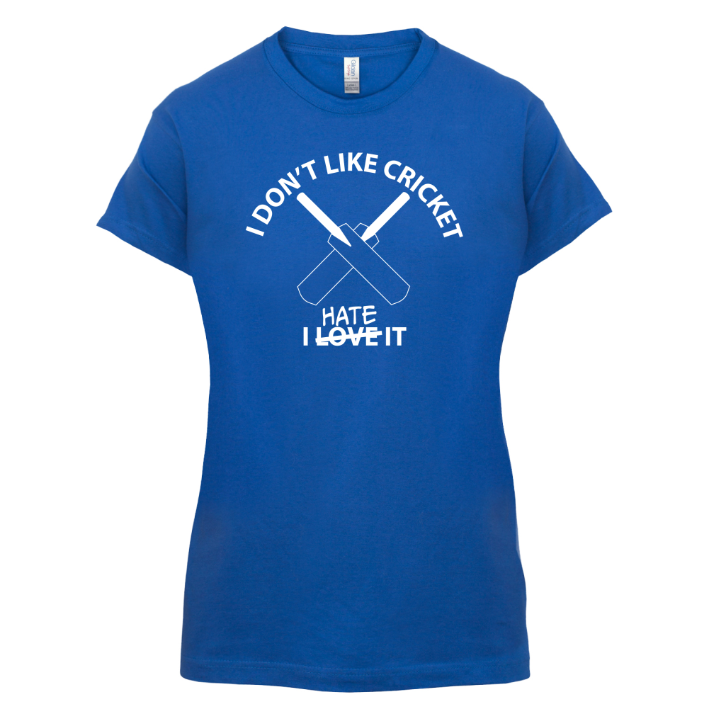 Women's Slim fit T-shirt, our ladies Don't Like Cricket Hate It t-shirt is printed on our popular 150 GSM ring spun womens garment. Available in 11 colours and from Size Small to XXL.