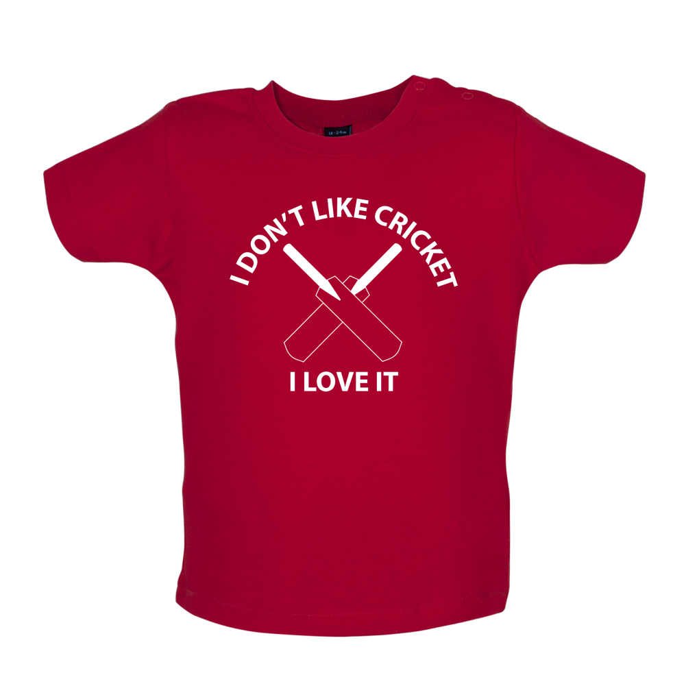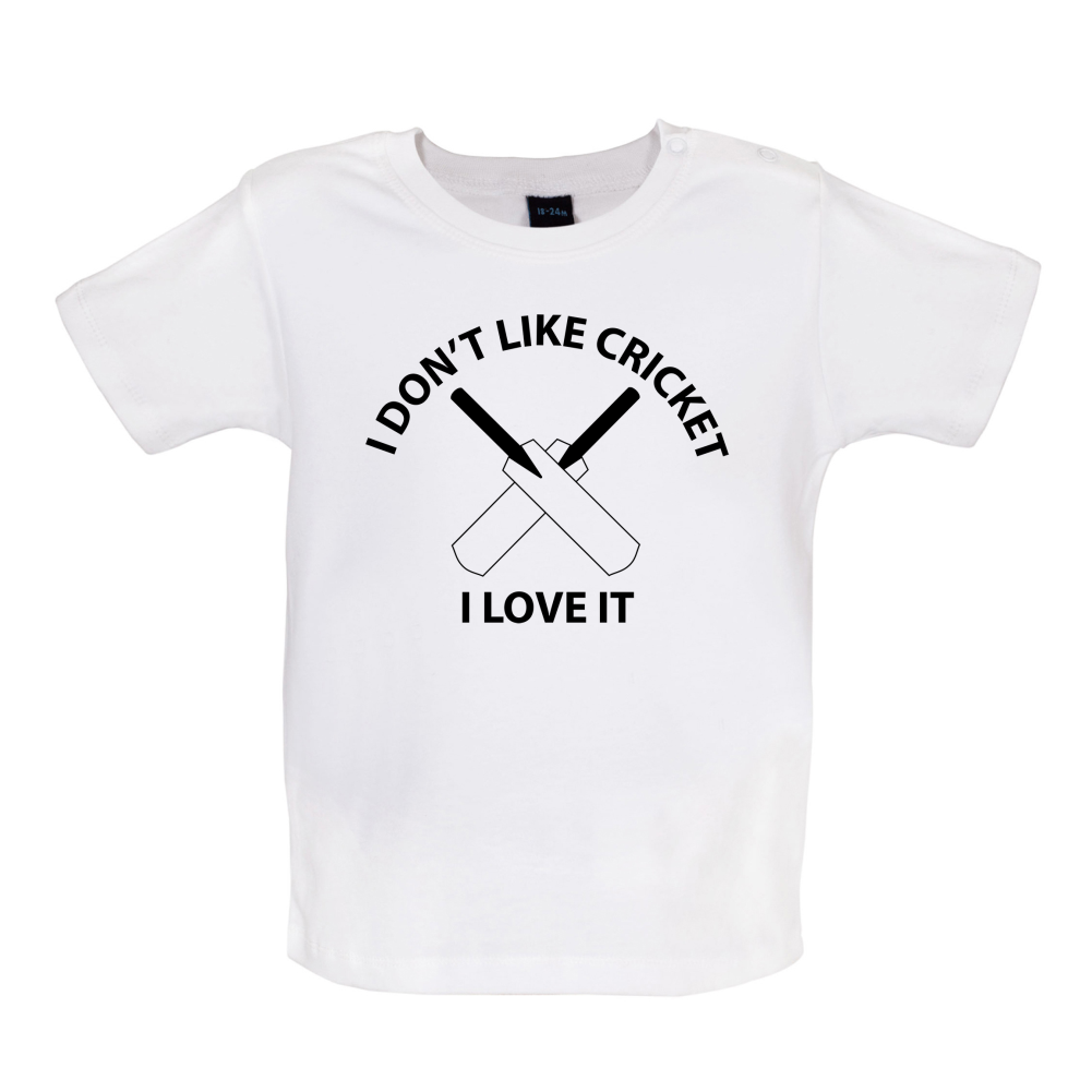 Baby/Toddler T-shirt: Our Baby Unisex style Don't Like Cricket Love It T-shirt is printed on our high quality 200 gsm ringspun cotton garment which features shoulder poppers to ease getting your little one dressed. Our Baby T-shirts are available in a choice of Eight colours.