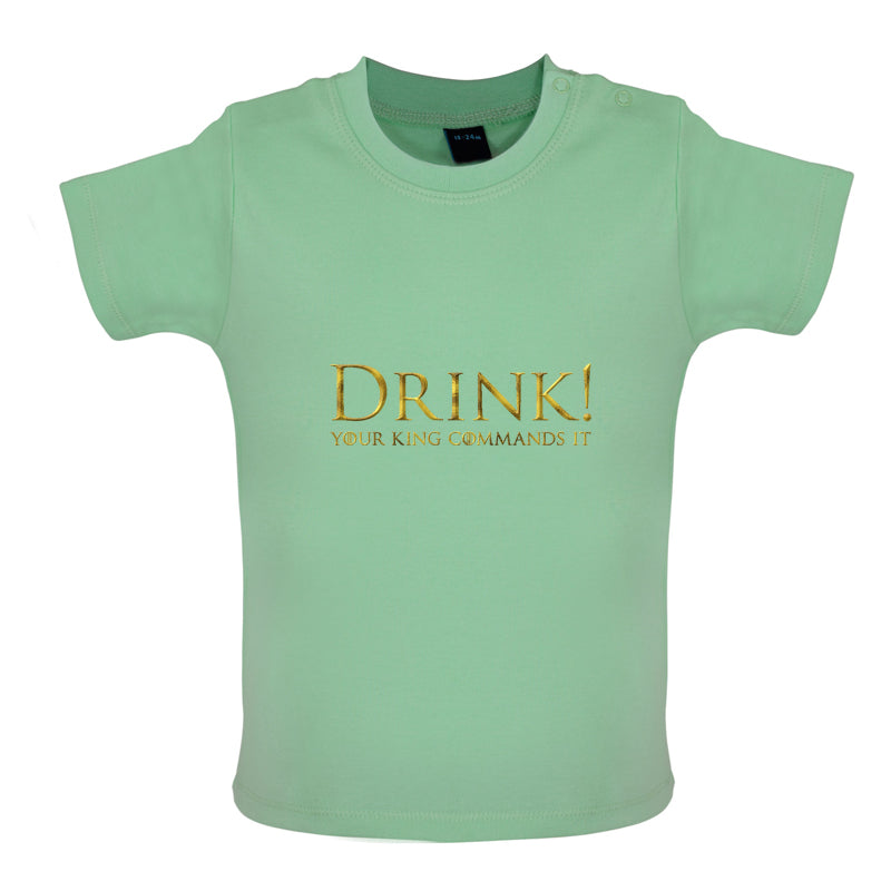 This Drink your King Commands It baby design is available in a choice of garments, use the menu on the right of this page to select your choice of the following: